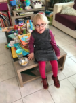 Coté scolaire, elle va à la crèche depuis ces 2,5 mois. Elle s’intègre très bien au groupe et crée